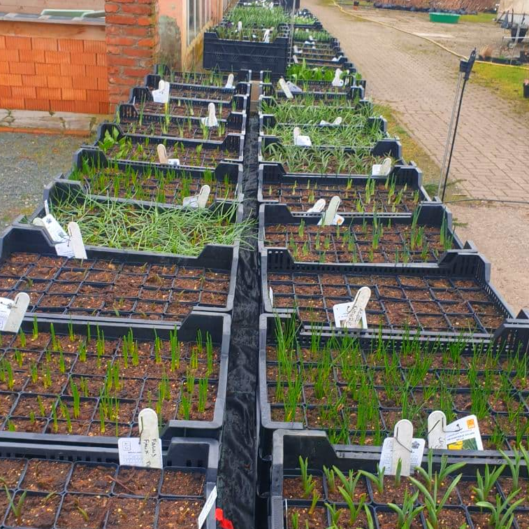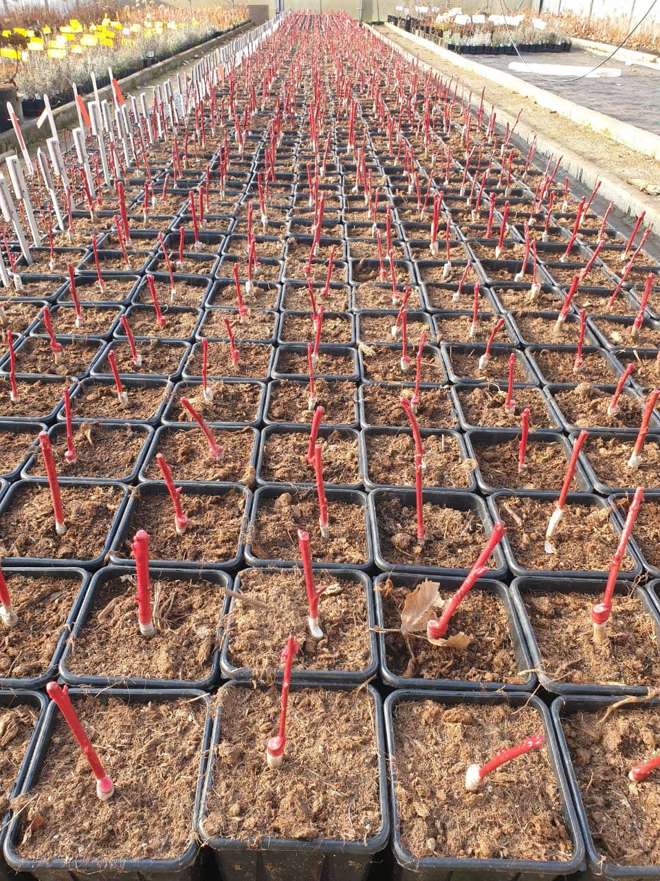 Lange Zeit stand es ohne Dachfolie da und diente lediglich nur als windgeschütztes offenes Quartier. Mit einer neuen vielversprechenden Dachfolie und wieder erneuerten Steuerungstechnik, beherbergt es ab diesem Jahr die Jungpflanzen und Veredlungen aus der eigenen Vermehrung. Wir versprechen uns mehr Kapazitäten und eine bessere und einheitlichere Kulturführung.