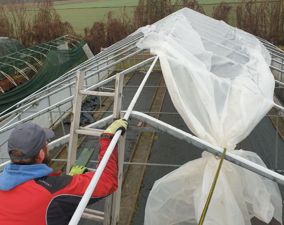 Mit einer neuen vielversprechenden Dachfolie und wieder erneuerten Steuerungstechnik, beherbergt es ab diesem Jahr die Jungpflanzen und Veredlungen aus der eigenen Vermehrung. Wir versprechen uns mehr Kapazitäten und eine bessere und einheitlichere Kulturführung.